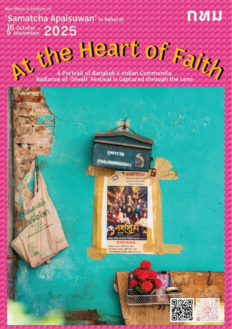 ร่วมออกเดินทางตามหาภาพถ่ายทั้ง 6 ชุดในนิทรรศการ “At the Heart of Faith: A Portrait of Bangkok’s Indian Community” โดย สมัชชา อภัยสุวรรณ ที่ซ่อนตัวอยู่ในย่านพาหุรัดและคลองโอ่งอ่าง ซึ่งเป็นส่วนหนึ่งของเทศกาล Amazing Thailand Grand Diwali Festival 2025 พร้อมร่วมเฉลิมฉลองเทศกาลดิวาลีครั้งยิ่งใหญ่ได้ตั้งแต่วันที่ 16 ตุลาคม – 5 พฤศจิกายน 2568 (วันลอยกระทง และวันคล้ายวันประสูติของคุรุ นานัก สาหิบ องค์ปฐมบรมคุรุแห่งศาสนาซิกข์) ตั้งแต่เวลา 16.00 – 20.00 น.