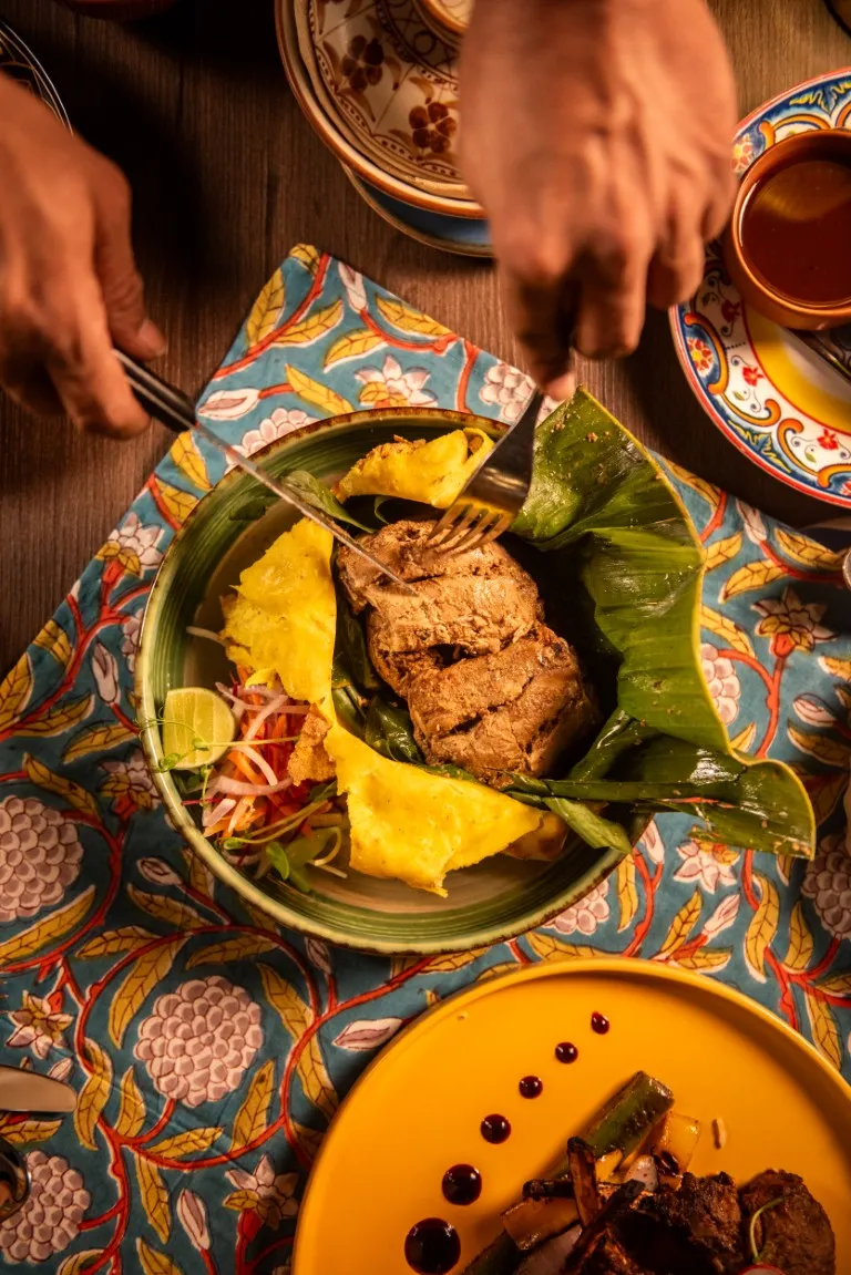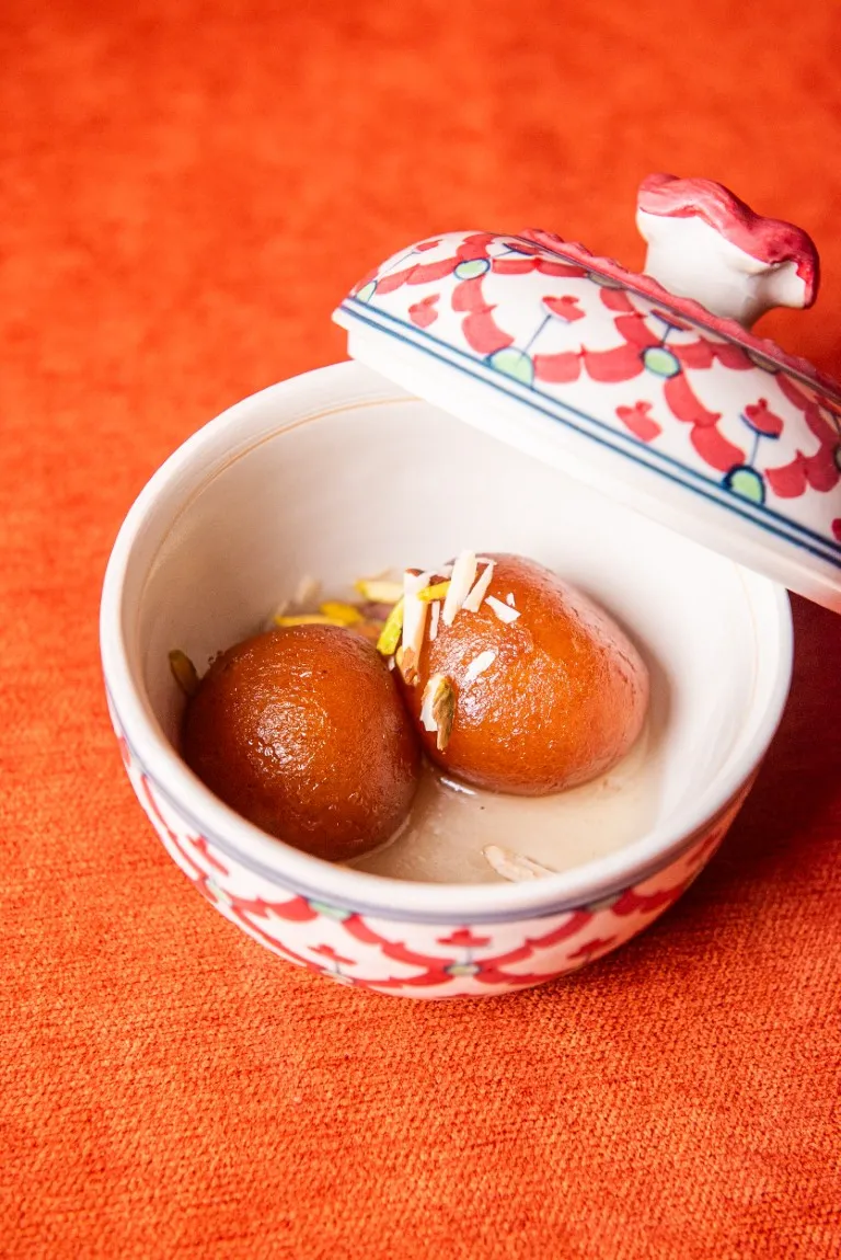 และเมื่อคุณคิดว่าความน่าตื่นตาตื่นใจได้จบลงแล้ว ของหวานก็พร้อมเสิร์ฟและกลายเป็นพระเอกของค่ำคืน Ghevar ขนมกรอบทรงรังผึ้งแบบดั้งเดิมจากราชสถาน เสิร์ฟพร้อมครีมแซฟฟรอนรสเข้มข้นหวานละมุนและยากจะผ่านเลย Shehd-e-Jaam ขนมลูกแป้งนมทอดราดน้ำเชื่อมจนชุ่มฉ่ำ ส่วน Mango Kulfi และ Dil-e-Rasmalai ปิดท้ายมื้ออร่อยด้วยรสชาติแห่งความทรงจำ ทั้งหวาน นุ่มนวล และเต็มไปด้วยความรื่นรมย์ในทุกคำ