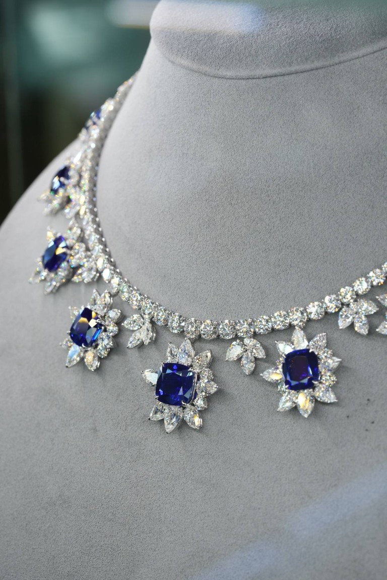 ‘The Royal Blue’ สร้อยคอประดับแซฟไฟร์แคชเมียร์สี Royal Blue จำนวน 16 เม็ด รวมทั้งสิ้น 104.61 กะรัต (ประมาณการราคาต่ำสุดที่ 100 ล้านเหรียญฮ่องกง หรือ 13 ล้านเหรียญสหรัฐ)